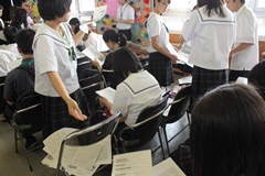 午前中は世界フォーラムの意義と目標についての学習と学校紹介を行いました。午後は「あいこジャンケン」などのアクティビティーを通して、UNESCO・ESDの考え方について学び、大学生の劇を通して各係の役割について考えました。