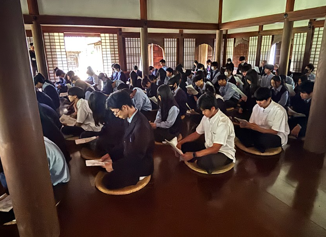 延期を経て実施された今回の閑谷研修は、自然散策や協力ゲームを通じてクラス・班の絆を深めることができました。また、旧閑谷学校での論語の学習は、本校の歴史と建学の精神に触れる貴重な機会となり、1年次生の学びを深める有意義な一日となりました。