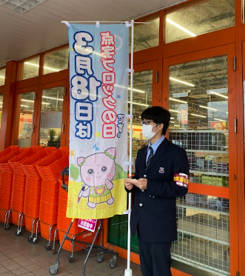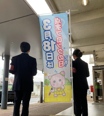 この記念日に合わせ、私たちは和気駅前と近隣のスーパーマーケット前で啓発活動をしました。視覚障害者の方にとって大切な「道しるべ」である点字ブロックへの理解を深めてもらうため、オリジナルステッカーを通行人の方々に配布しました。「世界に先駆けて岡山から始まった活動が、誰かの安全につながれば」という思いで声をかけると、多くの方が足を止めて話を聞いてくださいました。