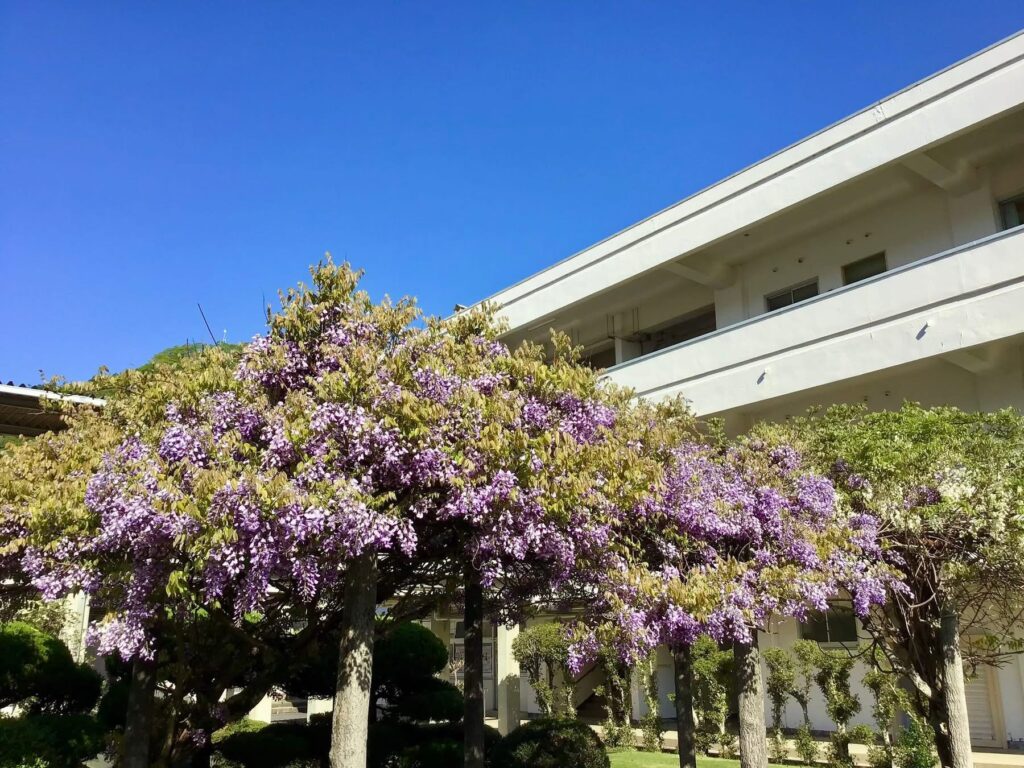 新学期が始まって1週間あまり。前回の勤務感覚が残っているためか、すでにもう何週間も経ったような、濃密な時間を過ごしています。校内の藤の花は早くも満開を迎え、例年以上のスピードで季節が進んでいるようです。